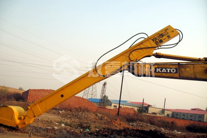 兩節(jié)伸縮臂是雙壹機(jī)械2005年自主研發(fā)的突破性產(chǎn)品,被多家同行模仿制造,從未被超越;臂長度19米,采用高噸位的三機(jī)聯(lián)動折彎設(shè)備折成U型,雙U型對接的焊接方式。