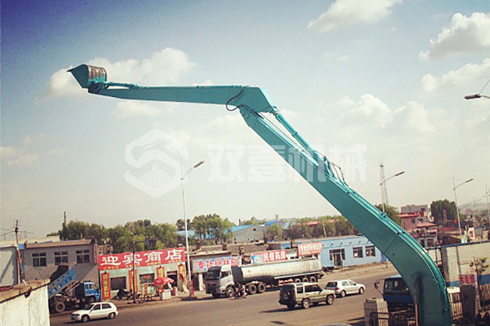 加長(zhǎng)臂:加長(zhǎng)臂是我們最常見(jiàn),使用時(shí)間更早的大小臂加長(zhǎng)臂,不需要伸縮缸控制。它通過(guò)大臂、小臂同時(shí)加長(zhǎng),配帶小挖斗,擴(kuò)大機(jī)械的工作范圍。