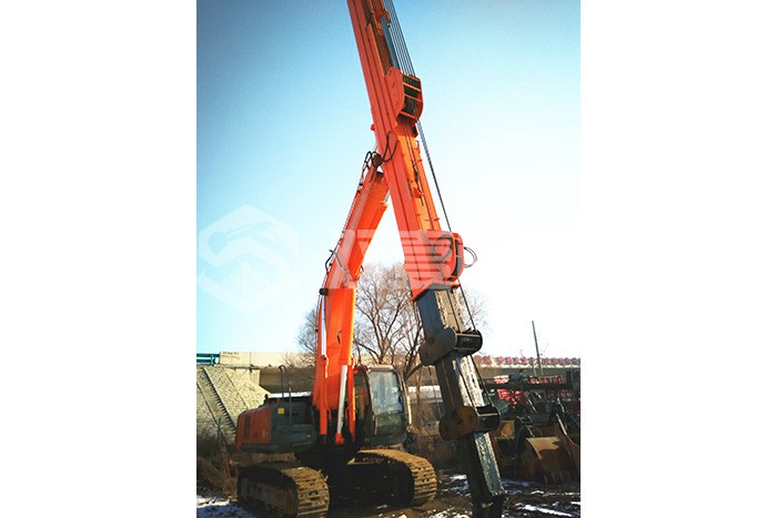 超長(zhǎng)四節(jié)臂:總長(zhǎng)度可達(dá)48米,臂內(nèi)可再伸出3節(jié),施工深度42.5米,配帶貝殼斗1.8立方或挖掘斗1.0立方。