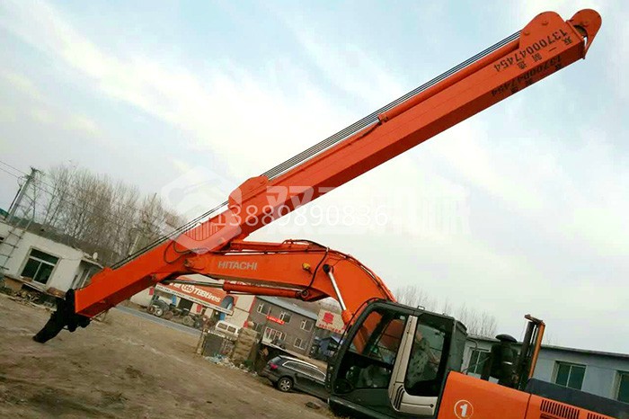 超長(zhǎng)四節(jié)臂:總長(zhǎng)度可達(dá)48米,臂內(nèi)可再伸出3節(jié),施工深度42.5米,配帶貝殼斗1.8立方或挖掘斗1.0立方。