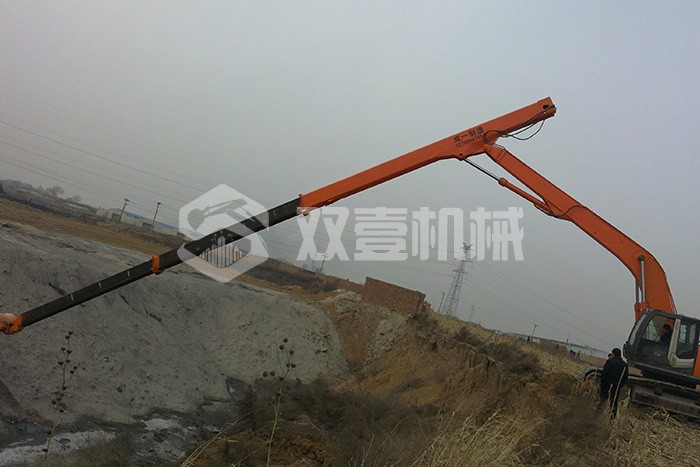 超長四節(jié)臂:總長度可達(dá)48米,臂內(nèi)可再伸出3節(jié),施工深度42.5米,配帶貝殼斗1.8立方或挖掘斗1.0立方。