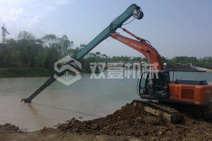 超長(zhǎng)四節(jié)臂:總長(zhǎng)度可達(dá)48米,臂內(nèi)可再伸出3節(jié),施工深度42.5米,配帶貝殼斗1.8立方或挖掘斗1.0立方。