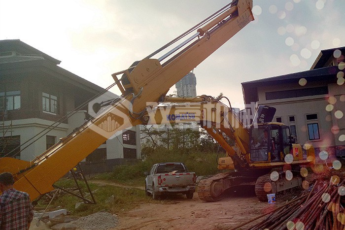超長四節(jié)臂:總長度可達(dá)48米,臂內(nèi)可再伸出3節(jié),施工深度42.5米,配帶貝殼斗1.8立方或挖掘斗1.0立方。